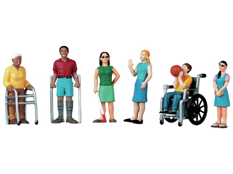 6 personnages de jeux famille avec handicap. Figurines jouets environ 12 cm très intéressantes comme matériel éducatif pour la compréhension et l'apprentissage des différences. Respect de la diversité, des relations humaines et des comportements[...]