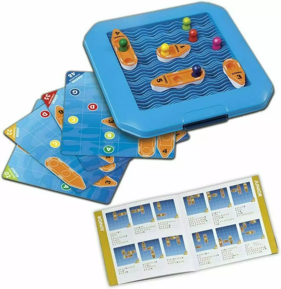 Comme son nom peut le laisser penser, avec "Titanic", il faut sauver des naufragés grâce à des canots de sauvetage. Comme dans Anti-Virus, le fonctionnement de ce puzzle se fait par le déplacement des pièces, les canots. IL faut donc trouver le seul ensemble de mouvements cohérent permettant de récupérer tous les pions disséminés sur le plateau. La contrainte ? Les canots ne peuvent pas tourner mais seulement se déplacer en avant, en arrière ou latéralement. Il est donc facile d'anticiper quels passagers pourront être sauvés par tel ou tel esquif. Car les bateaux ont des contraintes. Les pions à récupérer ne peuvent monter n'importe comment à leur bord. Une fois déterminé qui doit être embarqué et où, reste à trouver le comment...
